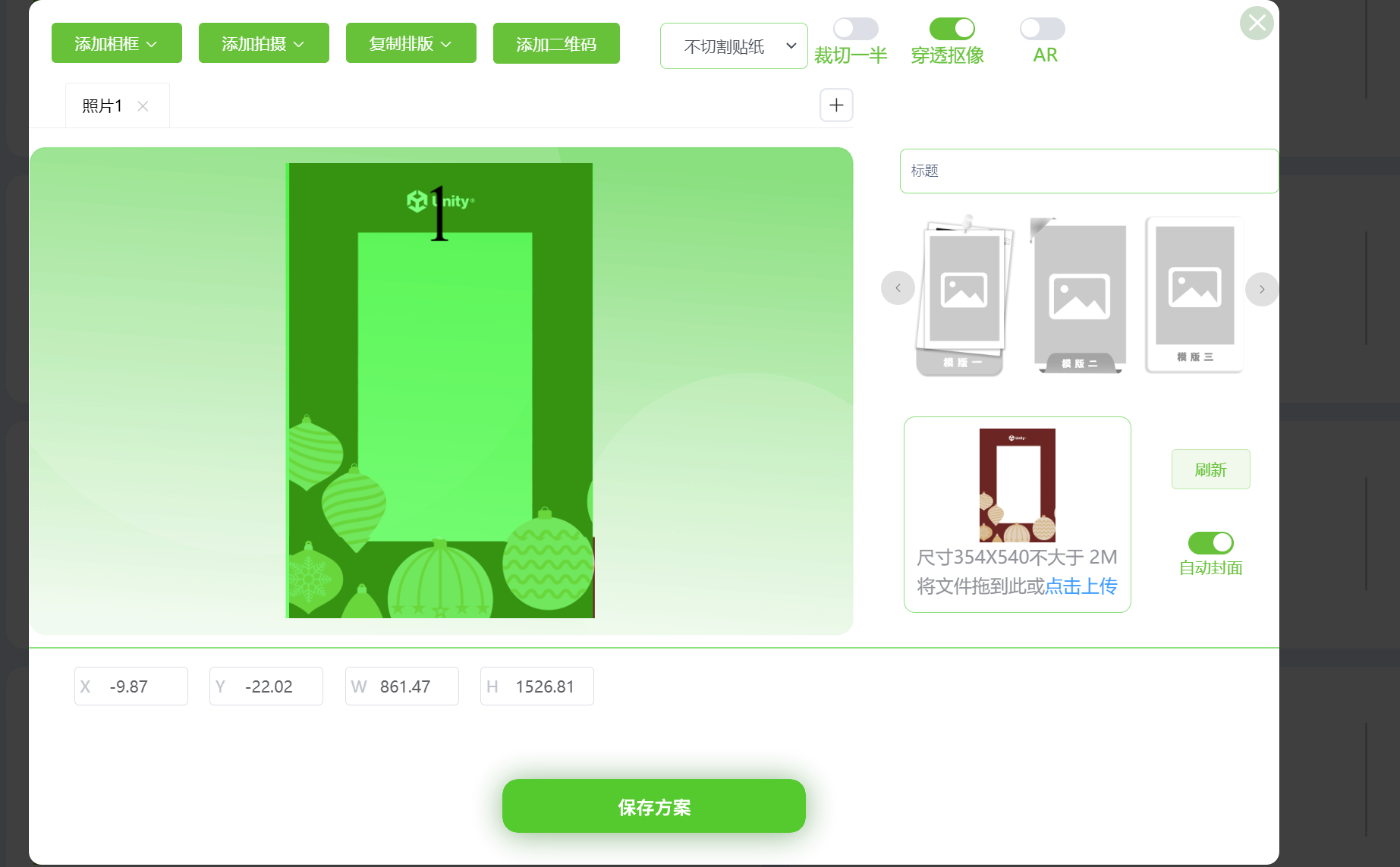 为了穿透效果、不会出现错误的情况、请保证拍摄照片的排版、和相框排版一致大小。
